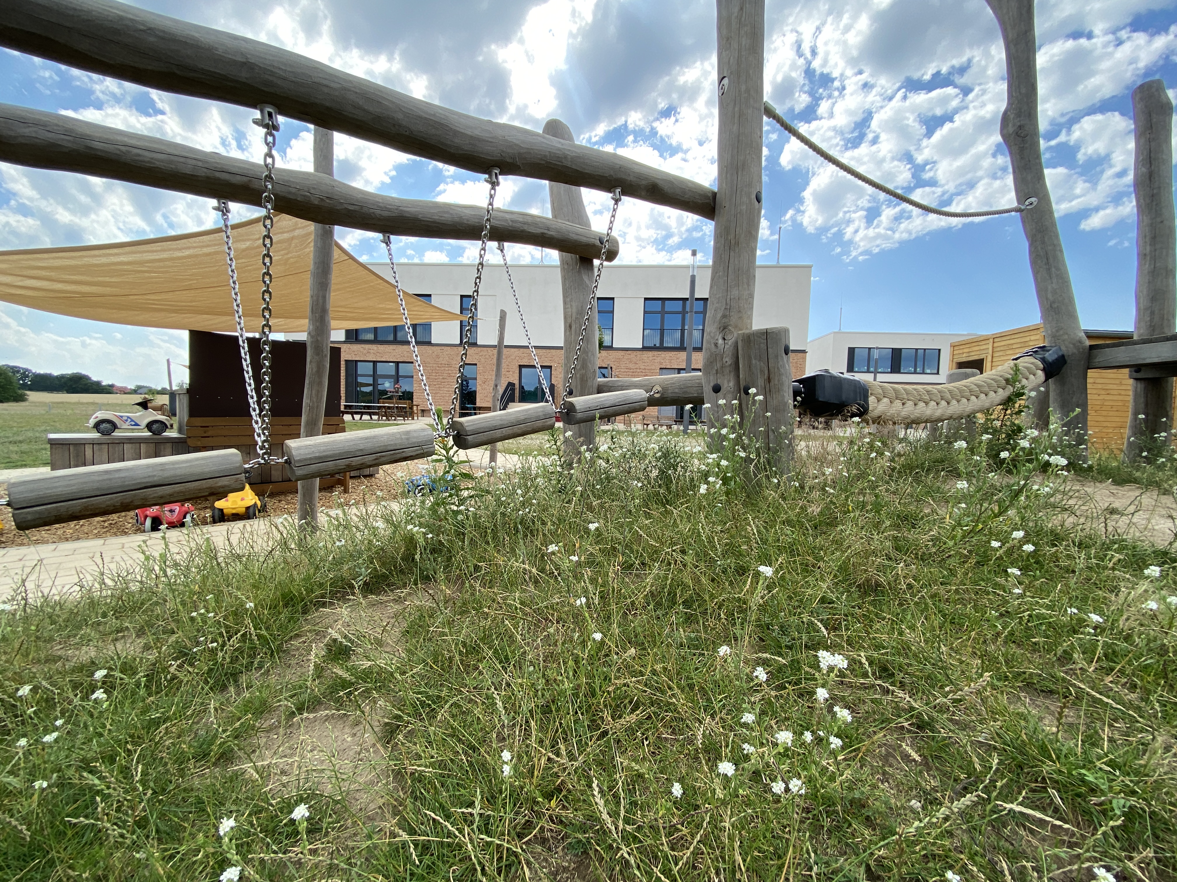 Unsere großzügigen Räume laden zum Spielen und Kreativwerden ein. In unserem Außenbereich gibt es einen Spielplatz mit Matschanlage, Aussichtsturm, Weidentipi und eine Obstwiese.